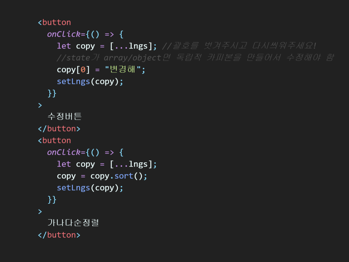 let copy = [...lngs]; 이렇게 ... 괄호를 해주는 이유는