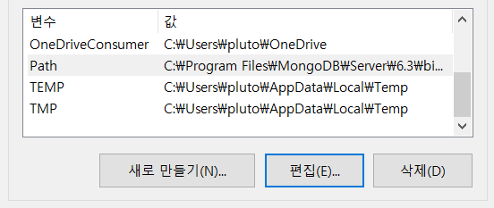 대부분 C:\Program Files\MongoDB\Server\6.3\bin 이런 경로로 설정되어있을것입니다.