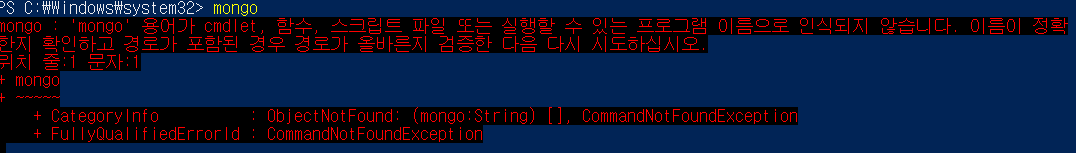 mongosh를 입력하면 될수도있다고 했는데 안됐습니다 ㅠㅠ...