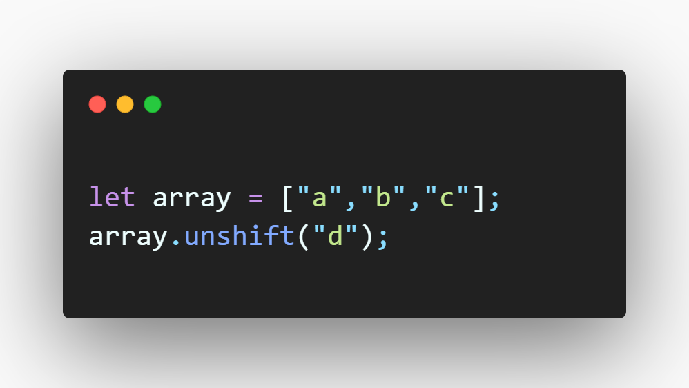 배열첫번째에 하나이상의 새로운 요소를 추가하고 변경된 배열의 길이를 반환하는 함수입니다.